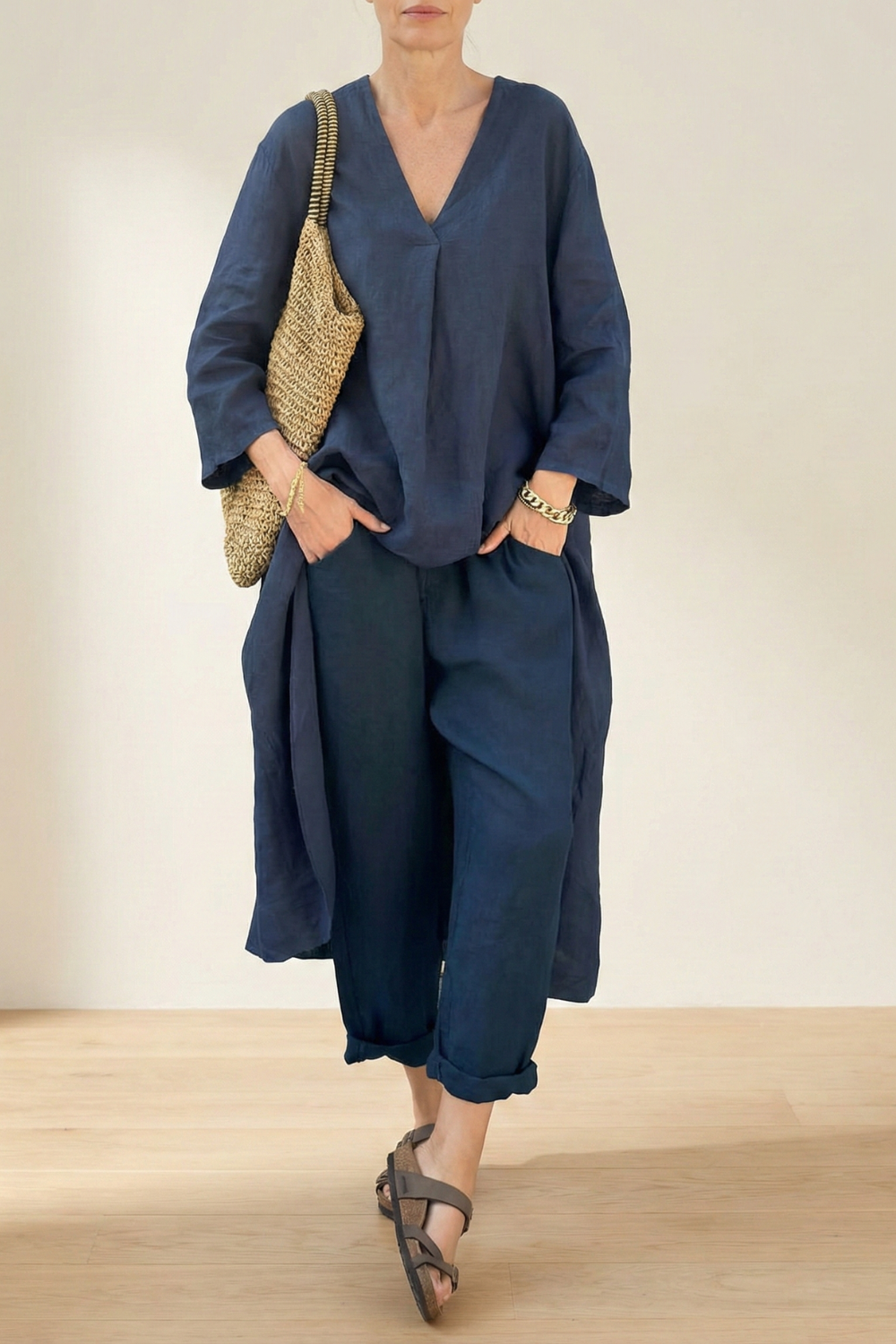 Notre Lisa – Ensemble Élégant et Décontracté est confectionné dans une matière fluide et légère.